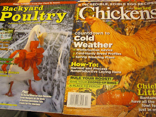 A few weeks ago while the kids were at their Awana program I went to hang out at the bookstore with some friends. One friend already lives on a farm (I think it's around 80 acres) and has a variety of animals to take care of. The other friend who lives in the city of Wichita discovered that she is allowed to have chickens in her back yard! What?! Really?! People are allowed to have chickens in the city of Wichita and our development of Lake Waltanna out in the country will allow horses and goats but specifically states in the by laws no chickens? NO FAIR! Anyways, while at the bookstore, the friend with the farm took us to the magazine section and showed us the following (who knew?):